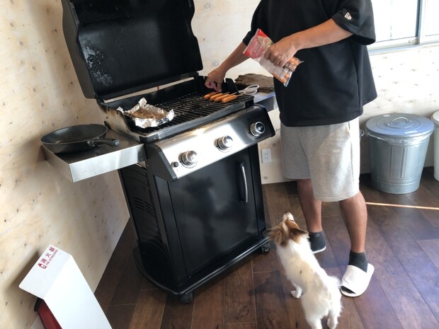 ワンちゃん同士のトラブルも起きないよう、隣との敷居もちゃんとありますし、BBQの部屋の窓からはドッグランが広々と見渡せるので、外で遊んでいるワンちゃんの様子も気にかけながら楽しむことができます。