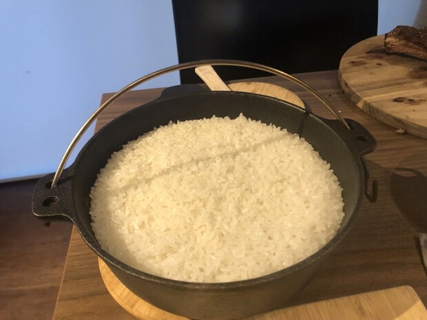 炊き上がりのほかほか白ごはん、またダッチオーブンの底にあるおこげも美味しいですよ🎵