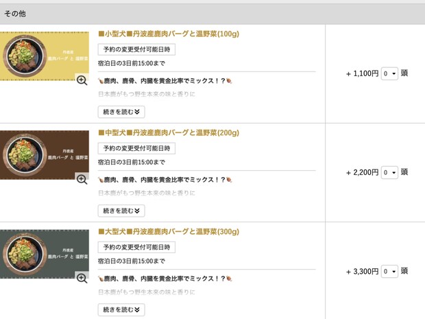 先ほどのオプションの「ダッチオーブンで炊く白ごはん」と同じように、ワンちゃんが大喜び間違いなしの「ワンちゃん専用ご飯」も付けることができます!
