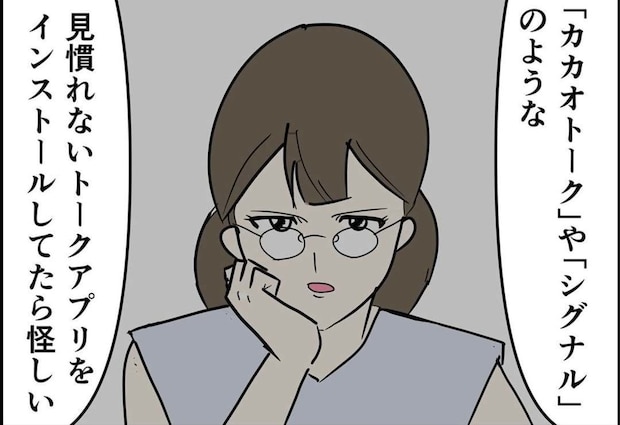 邦夫のスマホに見慣れないアプリを発見した佳奈さん。浮気相手とはやりとりするときは、別のアプリを使っているケースもあるので何か見つかるかもしれません。