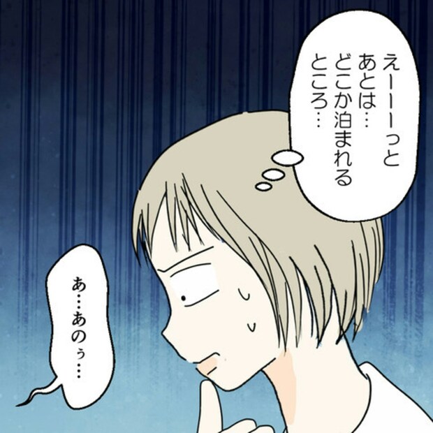 S葉さんは悩んだ末にベランダを貸したものの、E原さんは家に入れませんでした。彼の泊まる場所を必死で考えているS葉さんに、E原さんは何か言いたいようですね。彼は今夜はどこへ泊まるのでしょうか。