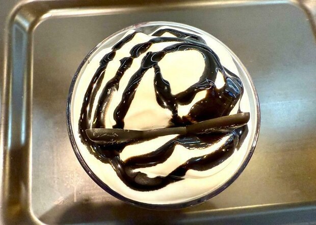 そしてホイップクリームの上にかけられたブラックショコラソースは、ハロウィンだけに蜘蛛の巣を表現しているのかな?と思ったのですが、実は黒猫のシルエットをイメージしているそう。