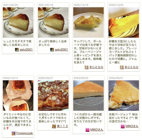 つくれぽ(作りましたフォトレポートのこと)にも、「簡単なのでまたリピしたい」「すごくしっとりでおいしい」など、簡単なのにしっとりしておいしく作れると言う声がたくさん届いています。