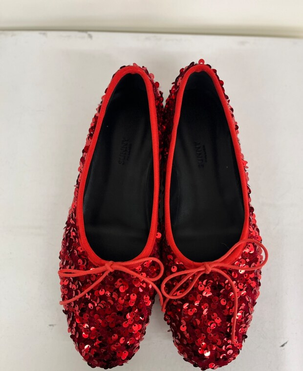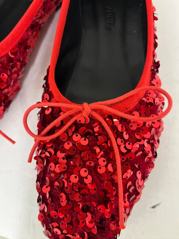 それが【ペリーコ サニー】のバレエシューズなのですが、まずはこのビジュを見てください。この映えっぷりはやばくないです? そもそも今シーズンは赤がトレンドカラーが気になっていましたし、表情豊かなスパンコールがザクザクと敷き詰められているルックスに一目ボレ♡ とはいえ、ベースはシンプルなバレエシューズなので汎用性も高そうですし、「これ、めっちゃ使える! 」と確信。