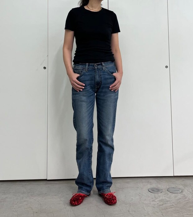 ベーシック好きなので普段はコンバースのオールスターを合わせることが多いんですが、バレエシューズもイイですね。というか、【ペリーコ サニー】が最高です♡ 王道中の王道のスタイリングがパッと華やぎますし、深めの甲のおかげで面積も多くなって存在感もスゴイくないですか!? そして何より赤が差し色になってカワイくアップグレードされています。