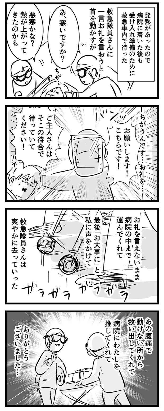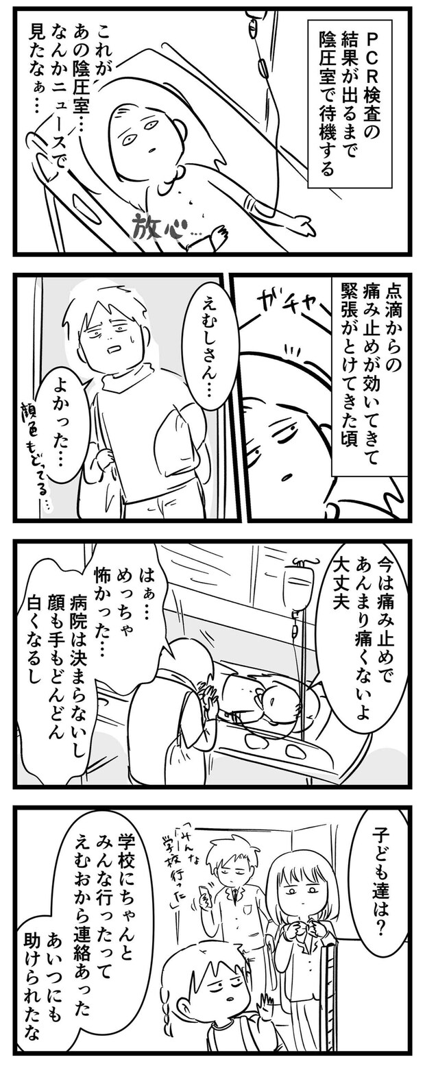 検査が終わり、点滴で痛みも落ち着いたころにようやくえむふじんさんに会うことができたえむしさん。普段と違うえむふじんさんの様子やどんどんと顔色が悪くなる様子を見て、かなり不安に思っていたようですね。