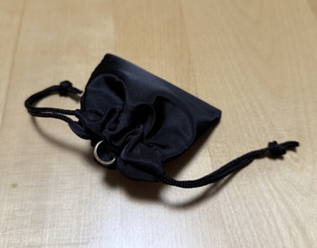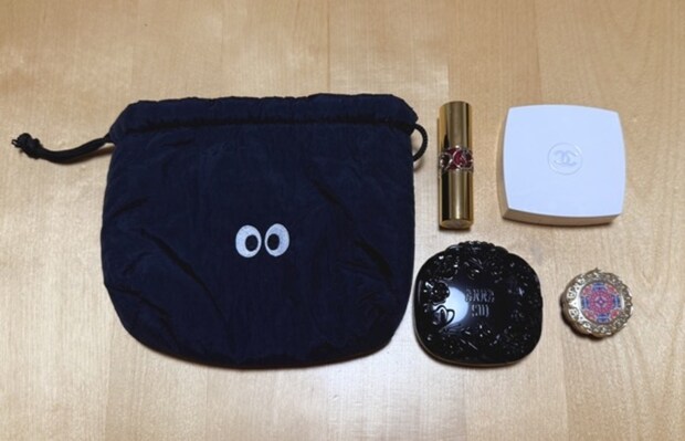 コスメや充電ケーブルなどの持ち運びには、ガサッと入れて傷つかない巾着が好きなんです。