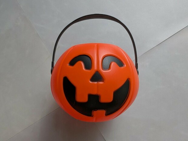にっこり笑ったかぼちゃの顔がかわいく、持ち手がついているので子どもがお菓子を集めるのにぴったりです。
