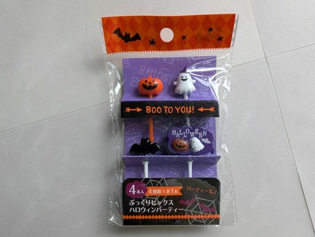 かぼちゃやおばけのモチーフがついた4本入りピックスです。