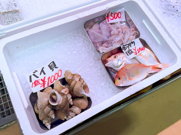 活気あふれる売り場には、色とりどりの魚介がずらりと並び、どれもピカピカと輝いていました。