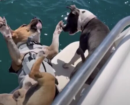 海に飛び込む準備をしていなかった犬さんはびっくり!