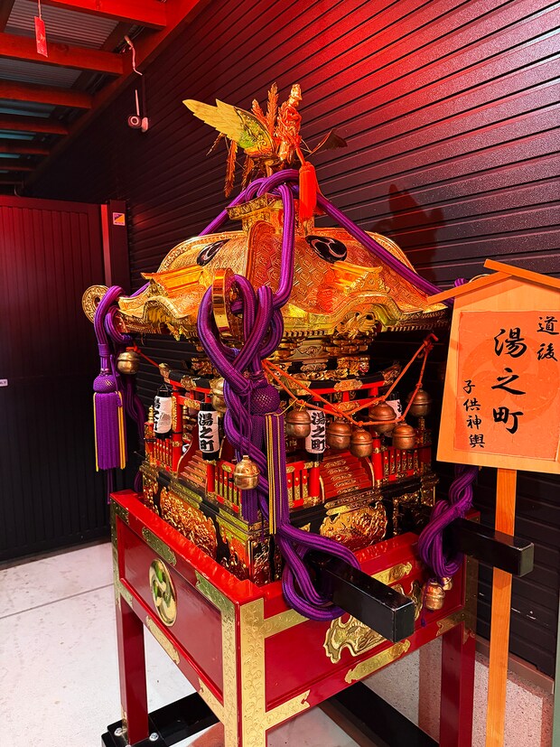 ちょうど4日前にが開催されたばかり。道後の街中を子供達が担いで練り歩いたお神輿をじっくりみることができました。