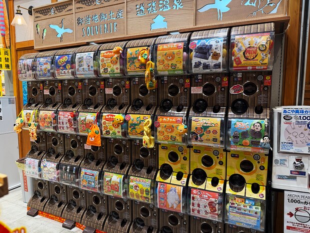 道後温泉本館のミニチュアから、みきゃんのアイマスクや手ぬぐいなどなど。どれが出るかは運次第♪