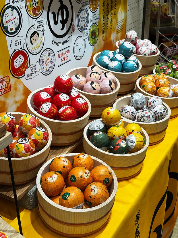 さて道後商店街のお土産屋さんには、さまざまなお土産やグッズが並んでいました。
