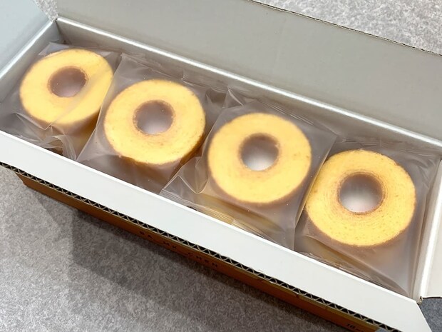 箱を開封してみると、形の綺麗なバームクーヘンが整然と収まっていました。丁寧に作られていると感じさせるバームクーヘンで、プレゼント用にも使えそうですね♪