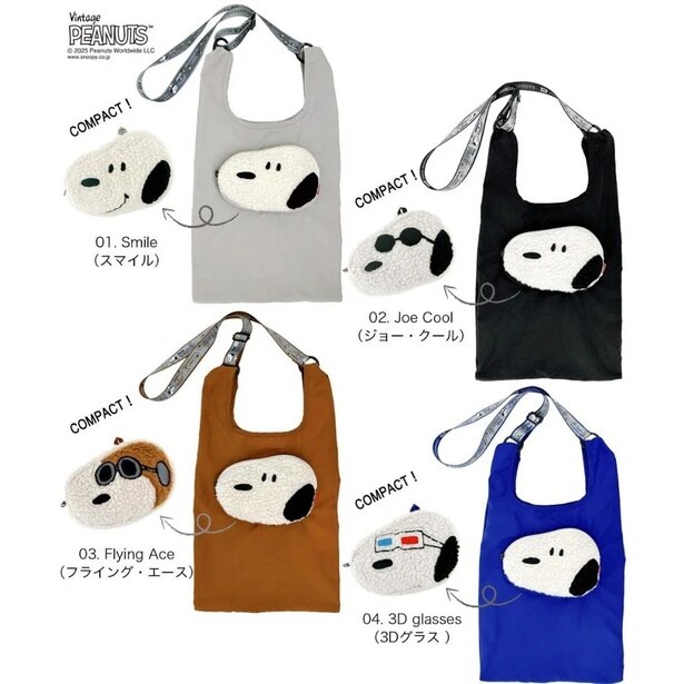 このもこもこポケット、裏返せばショッパー本体を収納することが可能。しかも、裏返してポーチ状にすると、スヌーピーの表情が変わるギミック付き!