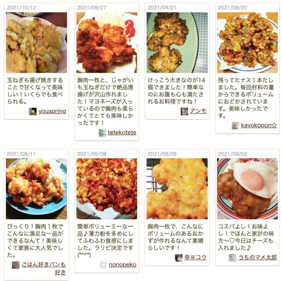 つくれぽ(作りましたフォトレポートのこと)にも「本当にボリュームたっぷり!」「ふわカリがおいしいです」「リピートしています!」など、レシピのコスパのよさやおいしさを絶賛する声がたくさん届いています。