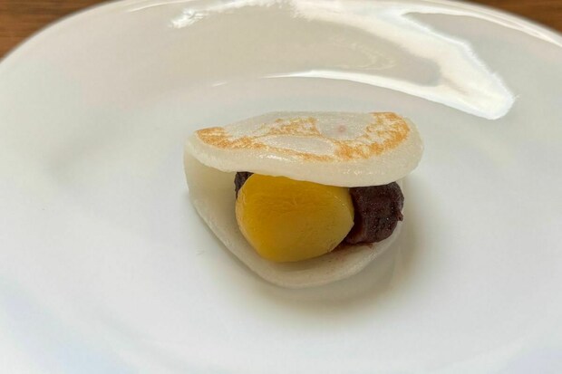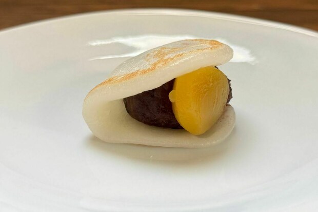 中に入った、栗は硬めで、もっちりとした食感の生地といいコントラストに。様々な食感と秋の味わいが楽しめる至福の大福です。