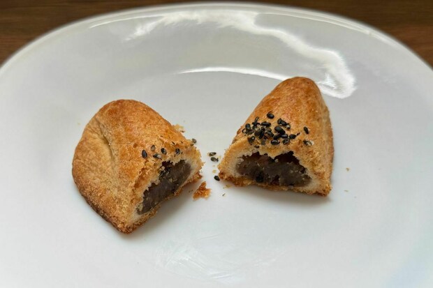 さらに粒あんの中には、ローストされたくるみが入っており、甘塩っぱさのなかに、さらなる香ばしさと食感のアクセントにを加えてくれています。
