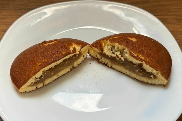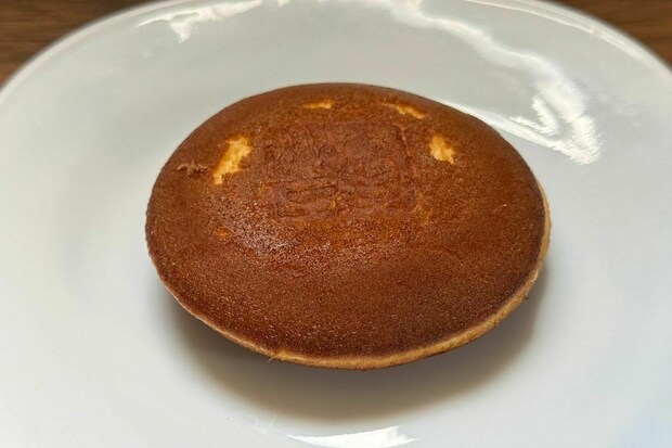 表面には適度に艶が見られる、手のひらサイズのやや小ぶりなどら焼きです。