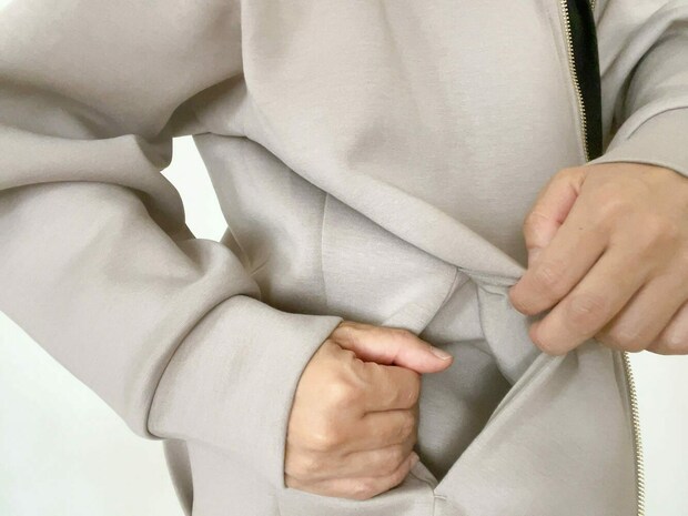 さらにダブルジップ仕様になっているため、下から開けてシルエットを自在に調整可能になっています。