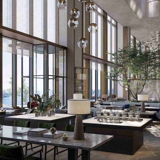 東京湾を一望するロビーラウンジ「Vue Mer」。屋外テラスを備えた開放的な空間の中、シグネチャーのアフタヌーンティーをはじめ、窓の向こうに広がる東京湾の風景と味わいの共演を堪能できる。日常を離れ、上質な一日を演出してくれる憩いの場。
