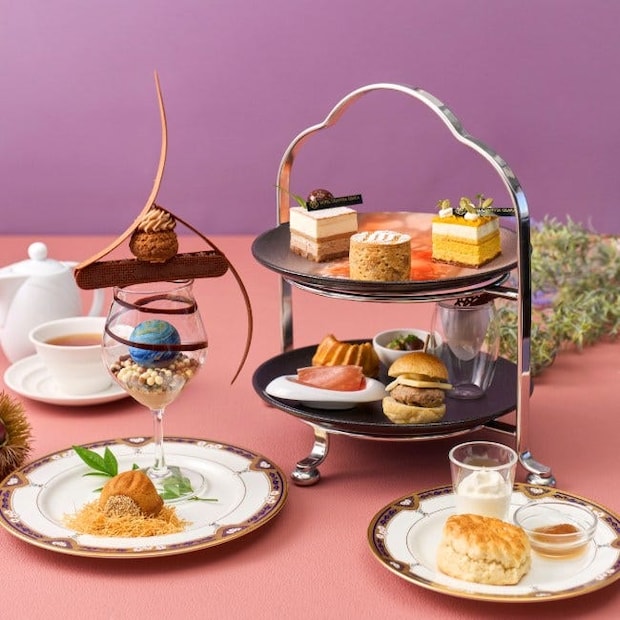 アーティスティックなパフェや栗・かぼちゃの2種のモンブランなどが揃う秋のアフタヌーンティー