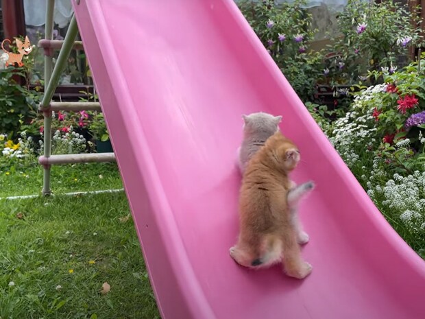 果たして登り切れるのか……! YouTubeチャンネル「British Golden kittens」では、2匹の子猫が滑り台で遊んでいる様子が配信され、動画のコメント欄には「愛らしすぎるだろ」の声が続出しました。