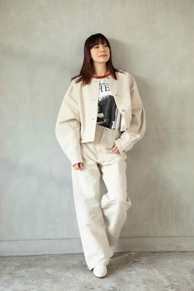 「ショート丈のGジャンに同素材のストレートパンツを合わせたセットアップコーディネート。吸水、耐久性に優れたブラックランドヘンプとコットンを使用した素材は、適度なハリ感の中に肌なじみのよい柔らかさもあり着心地も◎。ホワイトのワントーンでまとめ、大人のカジュアルスタイルに仕上げました」