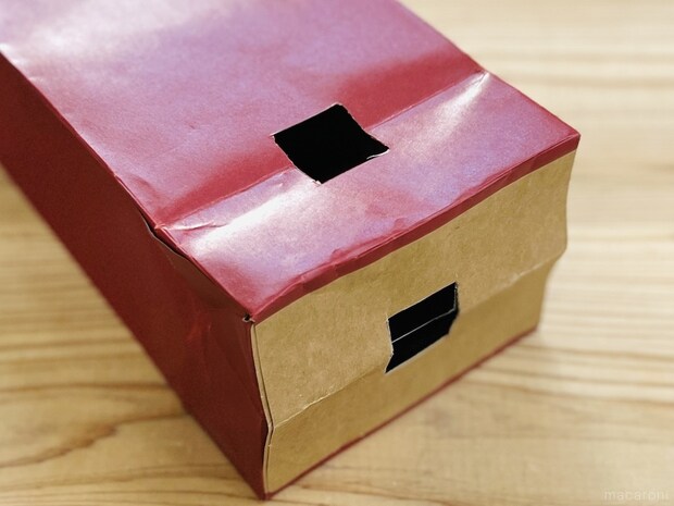 あとは底をカッターで四角く切り取るだけ。一見すると、両側面にも穴が開いてしまいますが、じつはここがあとで便利に使えるポイントになります。