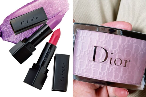 左:溶けるように伸び、ピタッと密着。シアーな発色で肌を美しく見せる。左からディグニファイド リップス EX14、35 各¥3,520(共にセルヴォーク)※EX14は数量限定 右:内側から上気したような自然な血色感とハッとするような透明感をもたらすチークも現在ヘビロテ中。ディオール バックステージ ロージー グロウ(本人私物)