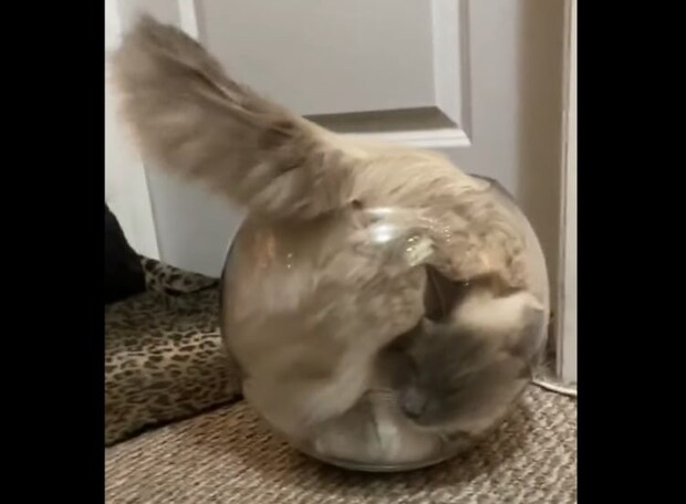こんな体勢でもしっかりとカメラ目線をしている猫さん。