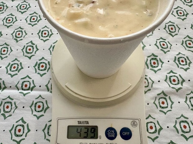 質感はクラムチャウダーよりも少しサラサラしていますが、適度なとろみがあり温かさが持続しそうな仕上がりです。