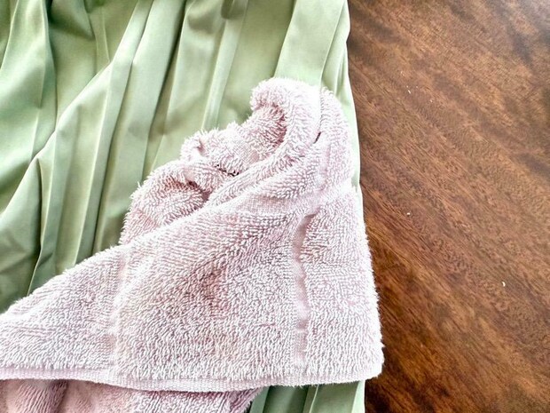 そしてクルクルとプリーツに沿って巻いて、さらに4つ折りにします。