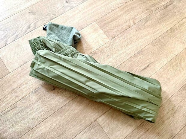 またポリエステル素材でプリーツ加工がされているので折りたたんでもシワをあまり気にする必要はなさそうですが、ウエスト周りなどに汗をかいたまま収納しても大丈夫なのかな?と少し不安も。