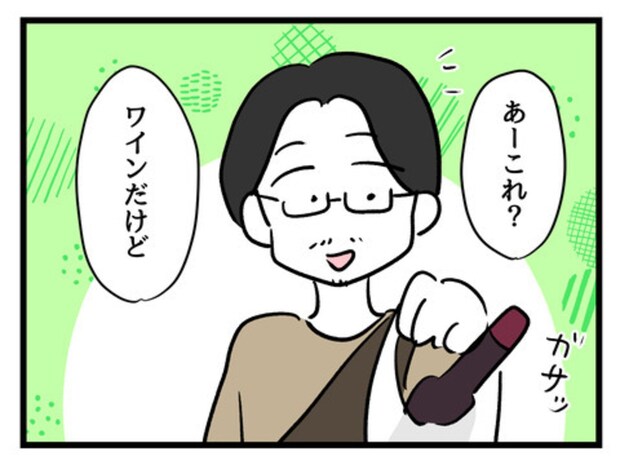 ワインを買ってきたりょうじさんに怒りがとまらないキリコさん。自分を差し置いてお酒を飲むことが許せないようです。