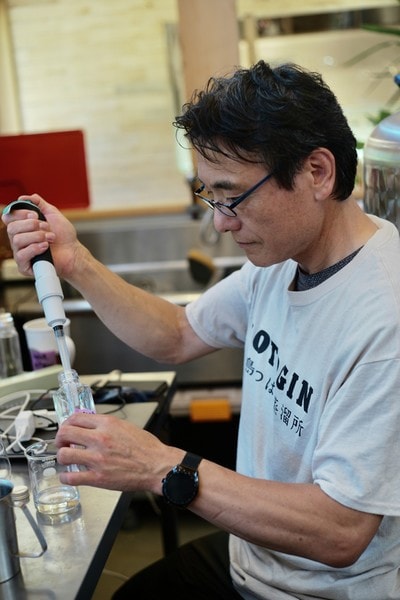 鬼頭:まずはしっかりと氷と馴染ませてください。成分が濃いので、混ぜていると白く濁ってきます。成分を濃くしても雑味が出ないような作り方をしています。味と香りがどんどん変化していきますので、口の中で味わいながら飲んでみてください。
