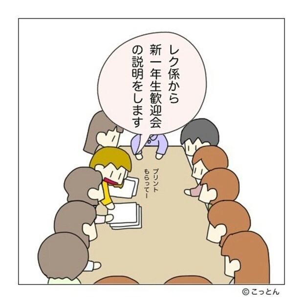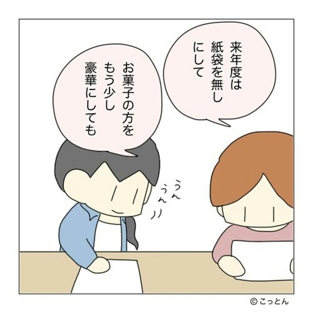 主人公・山吹さんは、新しい子ども会役員たちに新一年生歓迎会の説明をしているところ。来賓に渡す紅白饅頭について、変更したほうがいいところを提案していると…。