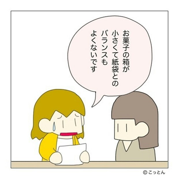 お菓子に対して紙袋が大きすぎて、不格好でした。