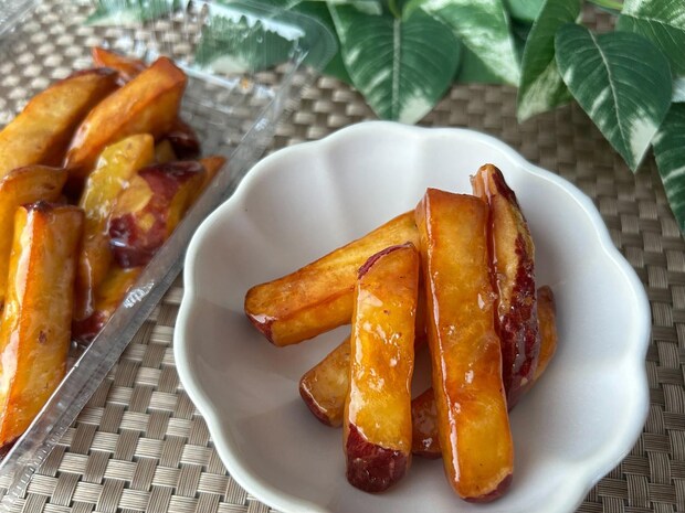 惣菜売り場でつやつやと輝きを放っていた「おさつスティック」。