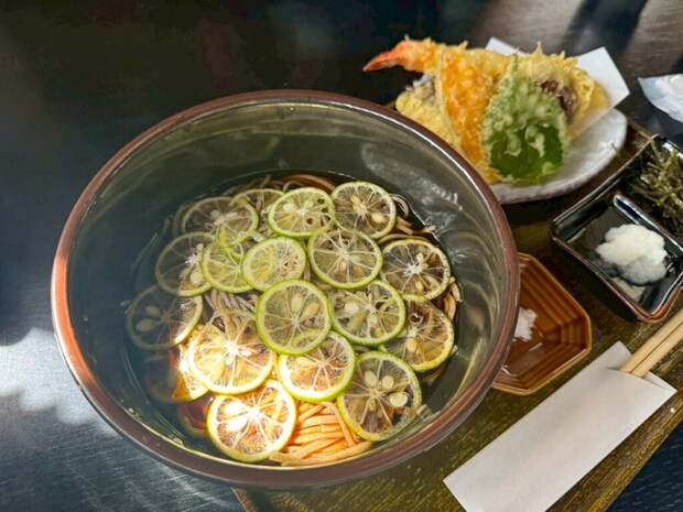 2025年10月14日 【移転オープン】丁寧な手打ちそばをリーズナブルに味わえる!風味とコシを堪能できる、町の蕎麦屋さん|米子市 na-na すだち蕎麦 ¥1,250(10月中旬ごろまで) 爽やかな柑橘の香りとすっきりした味わいで、暑い日にぴったりの一杯。薄切りのすだちがたっぷり浮かんでいて、清涼感が口いっぱいに広がります。 天麩羅盛り合わせ ¥600 揚げたてのサクサク天ぷらは蕎麦との相性抜群。お手頃価格で満足度も高いセットでした。 次ページ > 温玉山かけ冷やし蕎麦 ¥1,100(大盛 +¥300) < 1 2 3 >