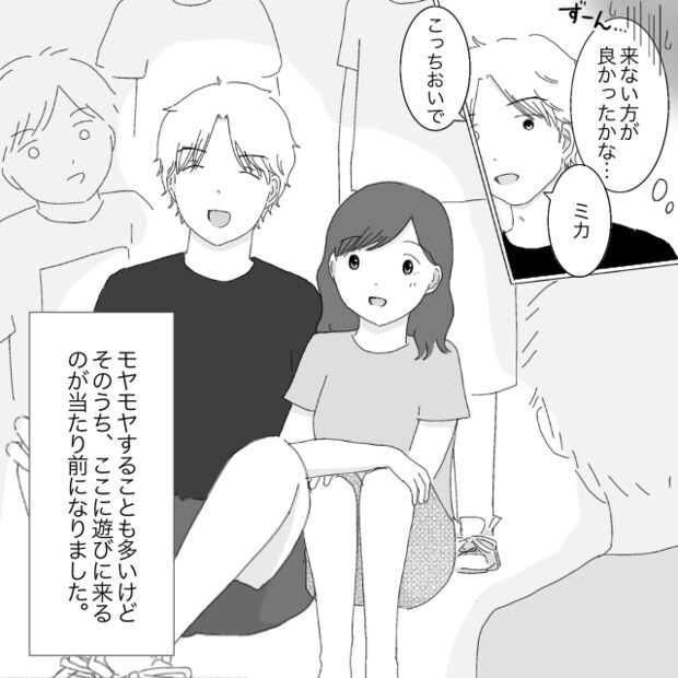 「来ない方が良かったかな」とショックを受ける私でしたが、色々な人に話しかけられても私を気にしてくれる・・・それだけで幸せな気持ちになりました。モヤモヤすることも多いけど、そのうち、ここに遊びに来るのが当たり前になりました。レンは男女関係なく誰とでも仲良くする人だから、一番好きなのは私だから、と自分に言い聞かせて・・・。
