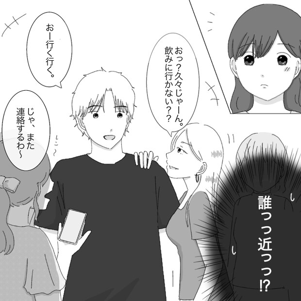 レンが来たことに気付いたのか、ぞろぞろと人が集まってきました。そこには男の子だけでなく女の子の姿も。すると、派手な女の子がレンの肩に手を置き、「久々じゃーん、飲みに行かない?」と誘います。レンも「おー行く行く」と何やら親し気な様子。私は、「誰!?距離近くない!?」と気が気でなりませんでした。