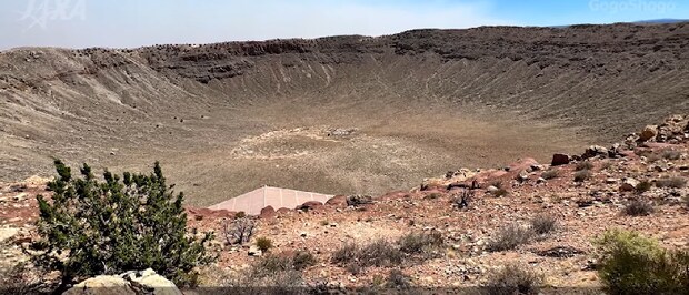 写真説明:直径30~50mの小惑星が衝突してできたとされるアメリカ・アリゾナ州のバリンジャー・クレーター(JAXA相模原チャンネル「隕石の衝突回避方法 プラネタリーディフェンス」より)