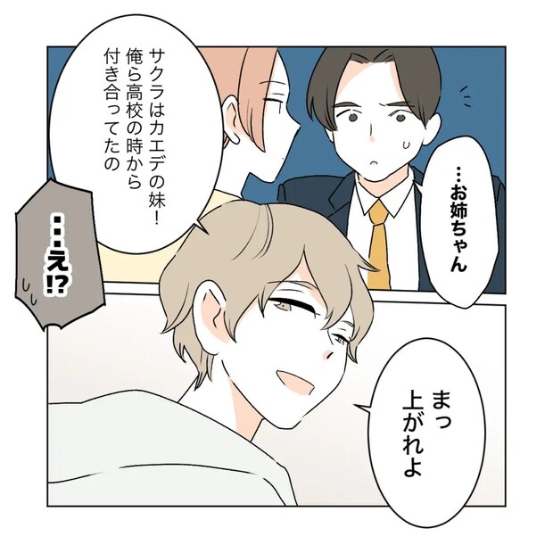 「サクラはカエデの妹!俺ら高校のときから付き合ってたの。まっ、上れよ」とショウマは高校時代からワタルが知らなかった事実をようやく伝えました。てっきりショウマとカエデが付き合っていると思った高校時代の自分の勘違いを始めて知って、「え!?」と驚いたワタルです。