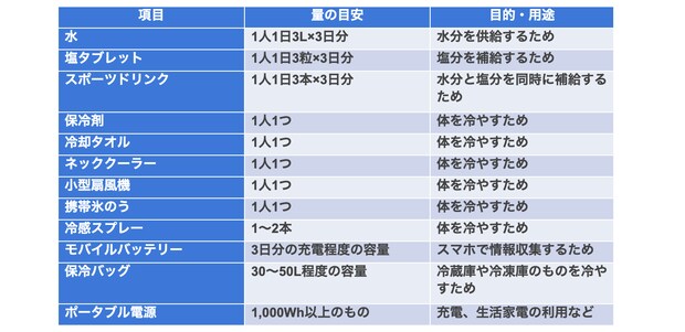 暑い時期の停電に備えて用意しておきたい防災グッズを以下にまとめました。