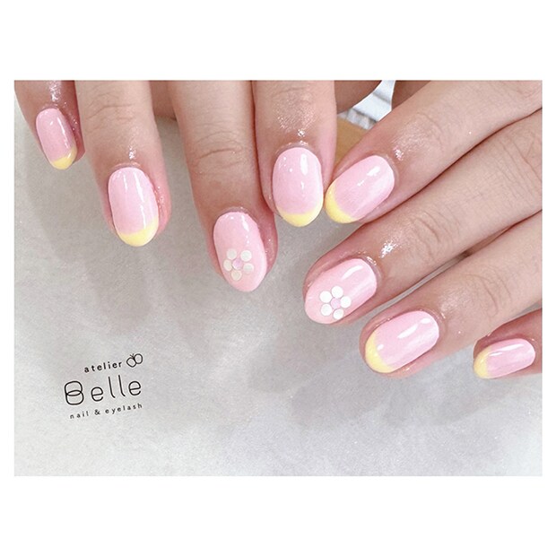 パステルピンクとイエローが相性抜群!フレンチラインが粋なアクセントに