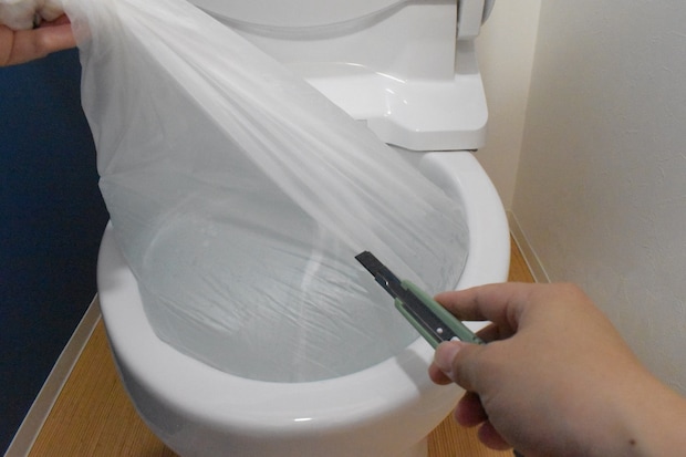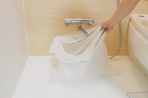 設置場所が浴室などの水場なら、設置場所でそのまま袋をカッターで切って水を流すこともできます。トイレの場合は慎重に水を抜かないと便器の外に水が漏れるので注意してください。