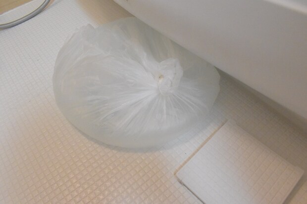 使用後の水のうは、水を流してしまえばあとはポリ袋が残るだけ。使った後の処理も簡単です。