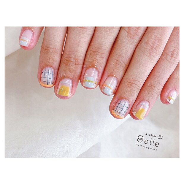 今回は、チェック柄とブロックカラーを組み合わせたカラフルなネイルデザインをご紹介いたします。